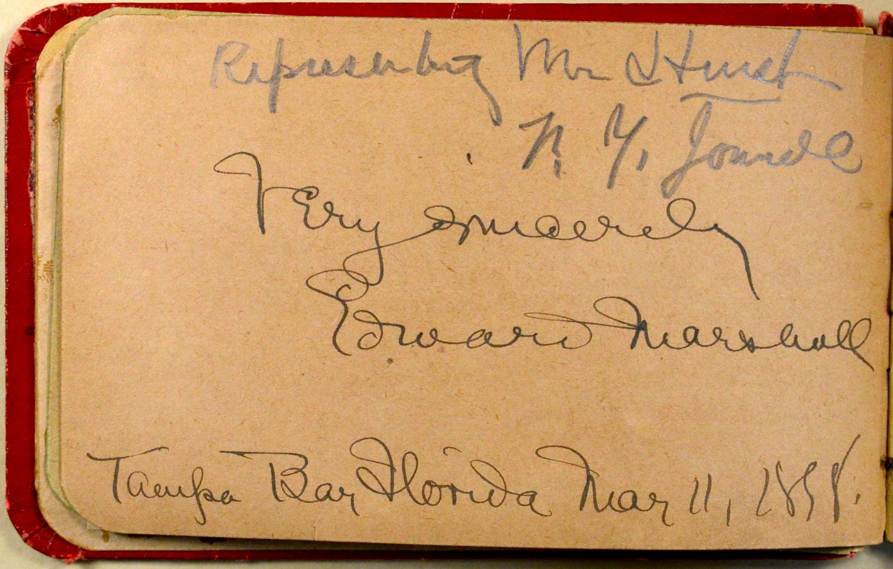 Clearly the owner of this autograph album had many stories to share, all thanks to his father and the Tampa Bay Hotel.