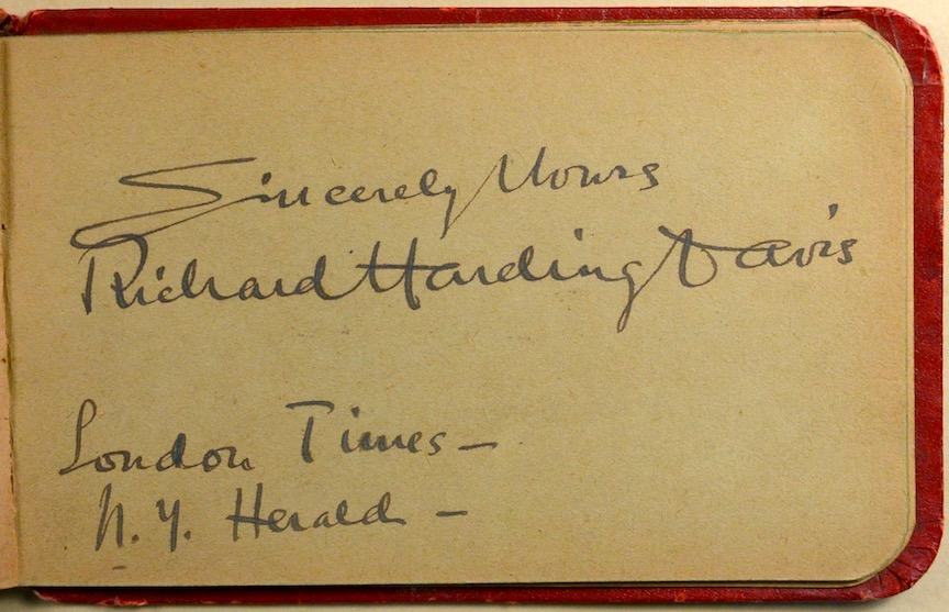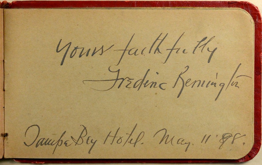 The album itself is a true treasure, containing over thirty signatures. Some of the more famous include Frederic Remington (artist and writer) and Richard Harding Davis (journalist and novelist).