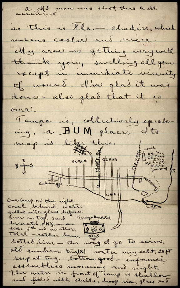 On display in the Henry B. Plant Museum, the letters of Henry A. Dobson paint a vivid portrait of life in Tampa during the Spanish-Cuban-American War. One of thousands of soldiers who crowded the small port community while awaiting transport to Cuba, the twenty-year-old volunteer sergeant lost his enthusiasm for war after weeks of hunger, heat, homesickness, as well as boredom and bouts of illness.