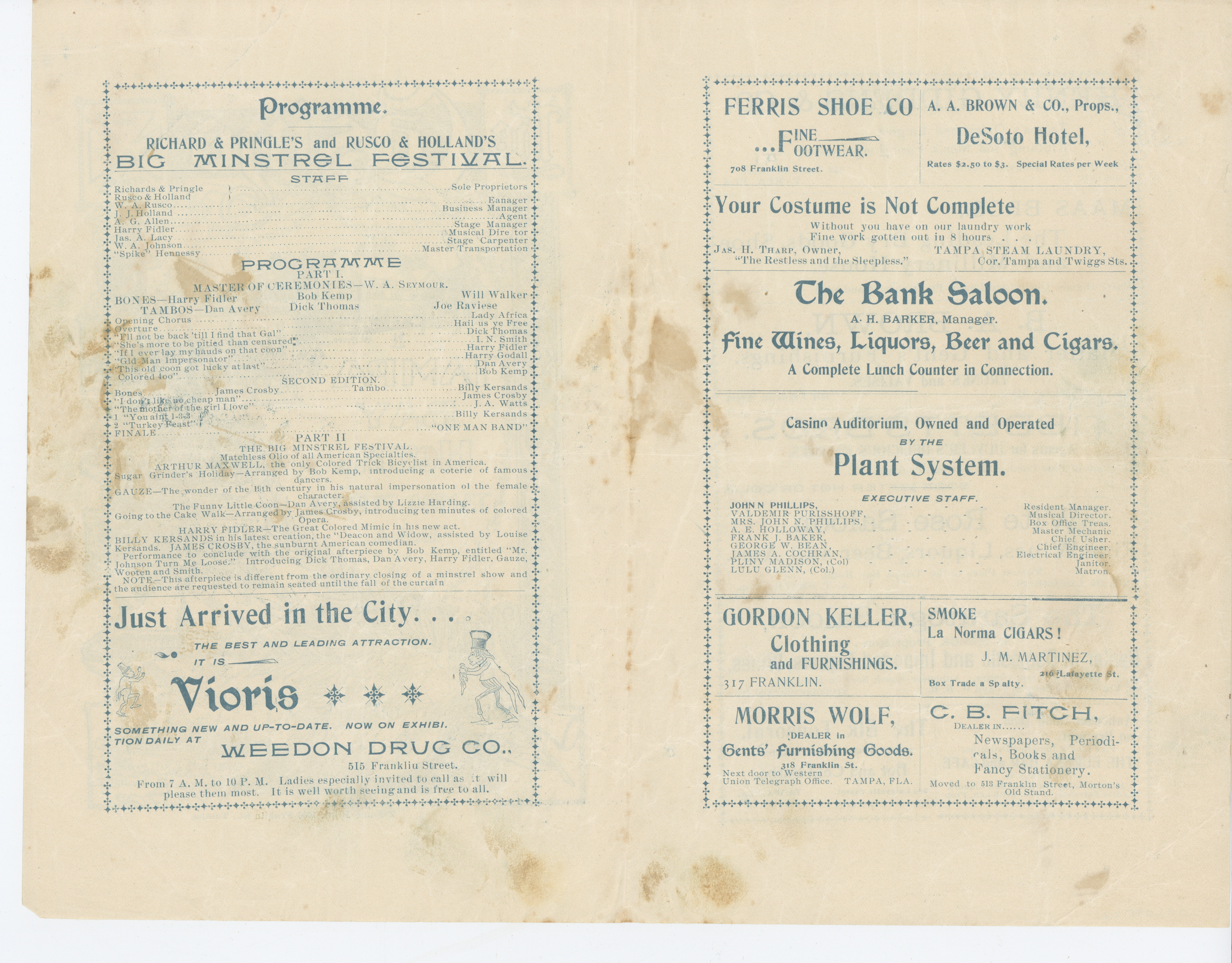 Richard and Pringle’s and Rusco and Holland’s Big Minstrel Festival, Tampa Bay Hotel Casino Program, January 27, 1899, Henry Plant Museum Archives