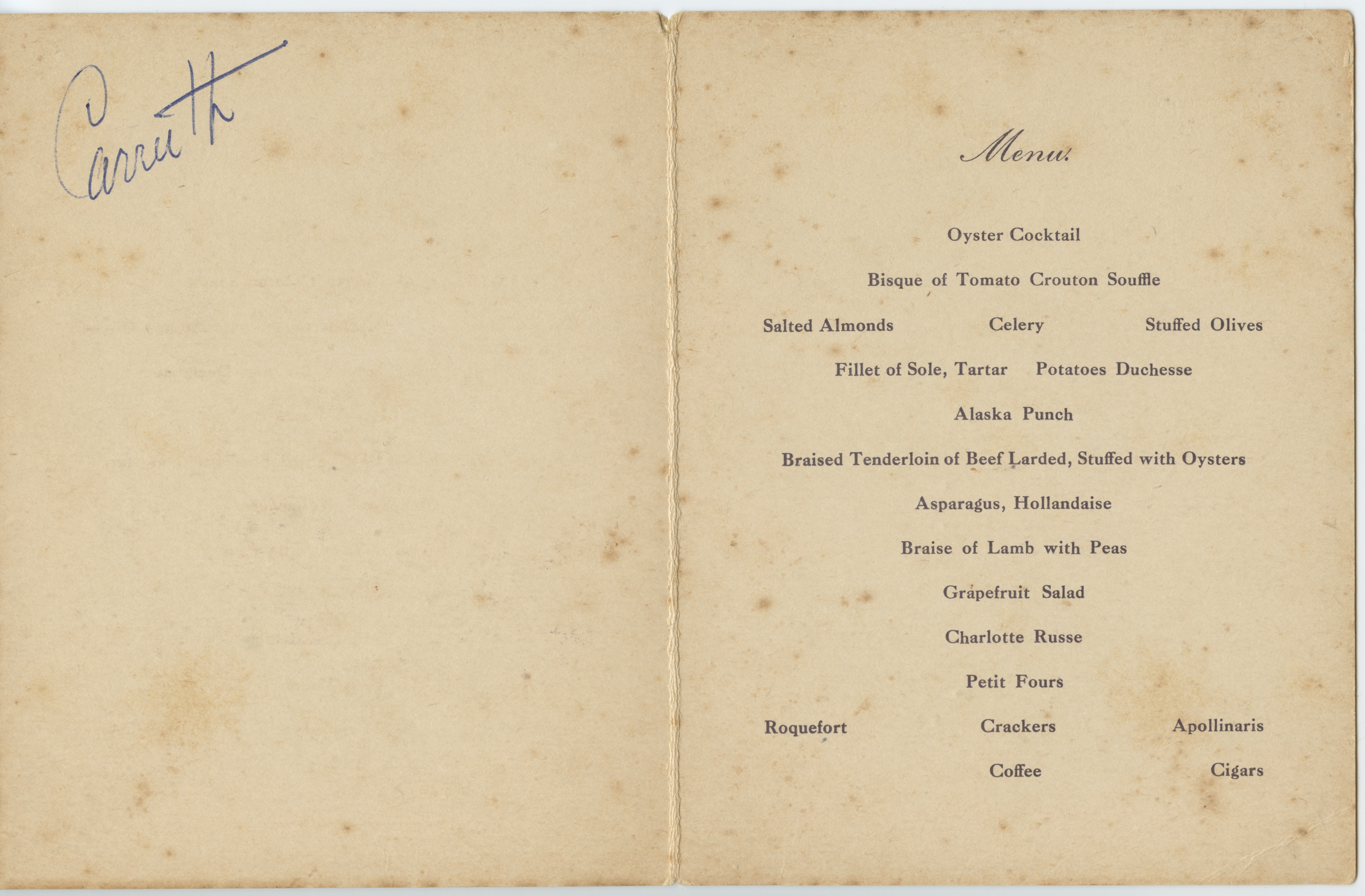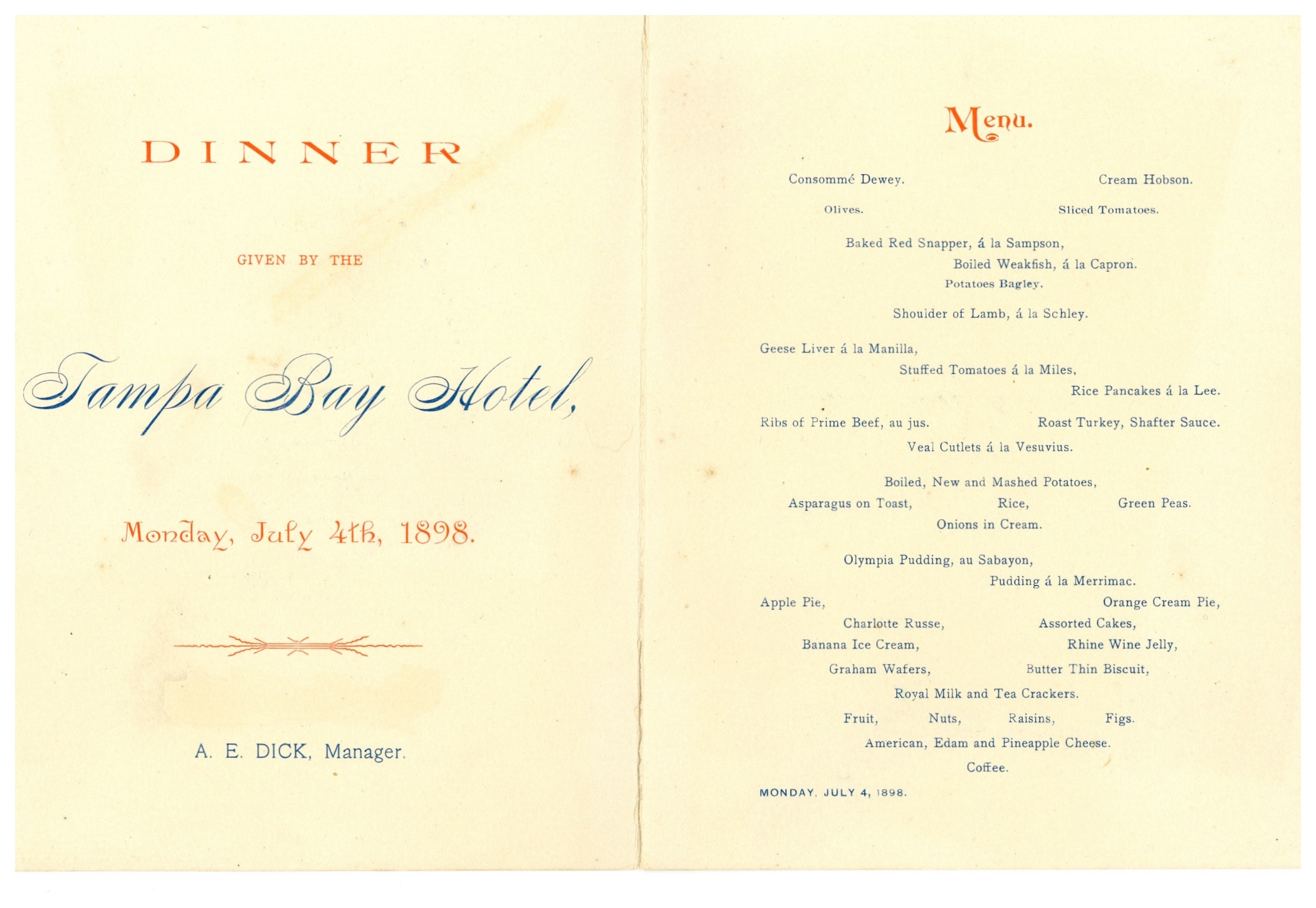 Born a slave in 1842, Wilson Percival ascended the ranks of hotel service to become one of the leading headwaiters in the nation. From 1892 to 1901, Percival migrated seasonally between West Babylon, New York, and Tampa, enjoying the longest tenure of any headwaiter at the Tampa Bay Hotel. Each winter, he mailed copies of menus, like the one pictured below, to be published in the Babylon newspaper.
