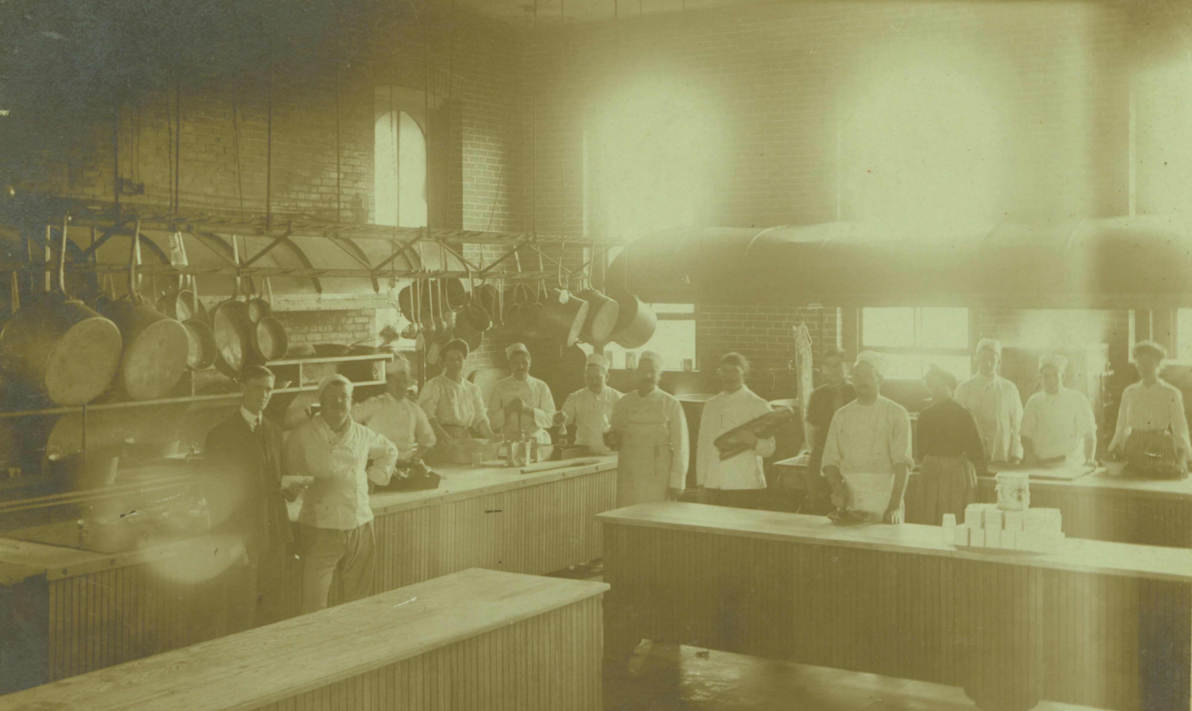 Jules E. Bole (second from left) with Kitchen Staff, 1905, Henry B. Plant Museum collection.