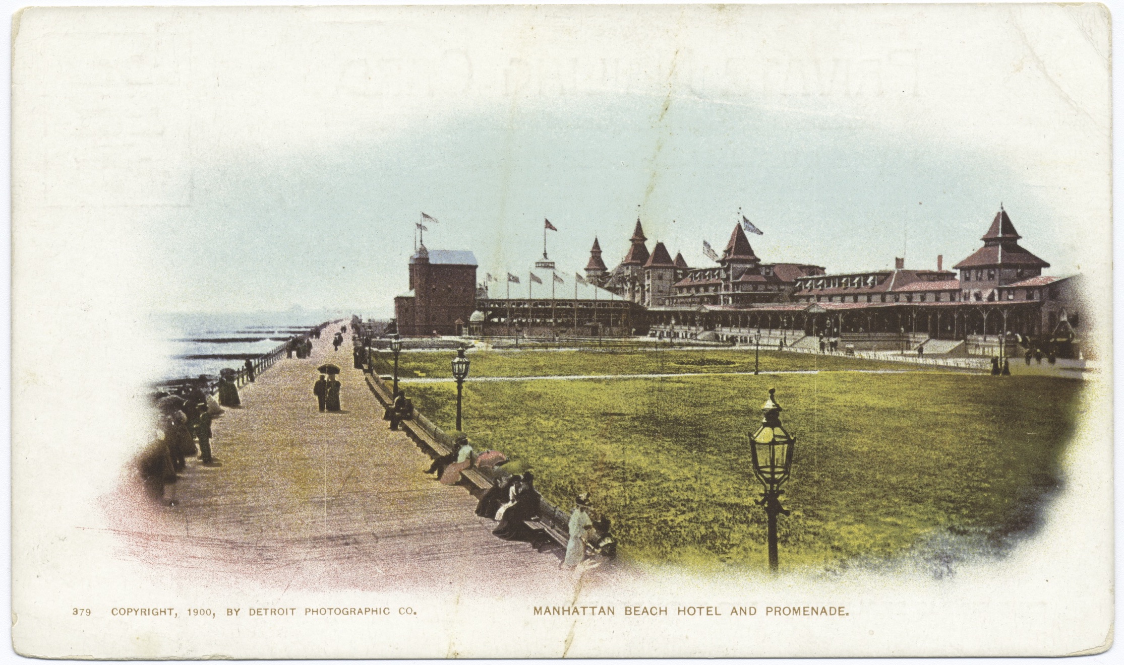 Twenty-five kitchen assistants accompanied Chef Joseph P. Campazzi from Coney Island’s Manhattan Beach Hotel in 1891 to inaugurate fine dining at the Tampa Bay Hotel. The Manhattan Beach Hotel, completed in 1875, had several rustic elements that blurred the boundaries between the buildings and the boardwalk. Ultimately, the beachfront property became too valuable to residential developers, and the resort was torn down in 1911.