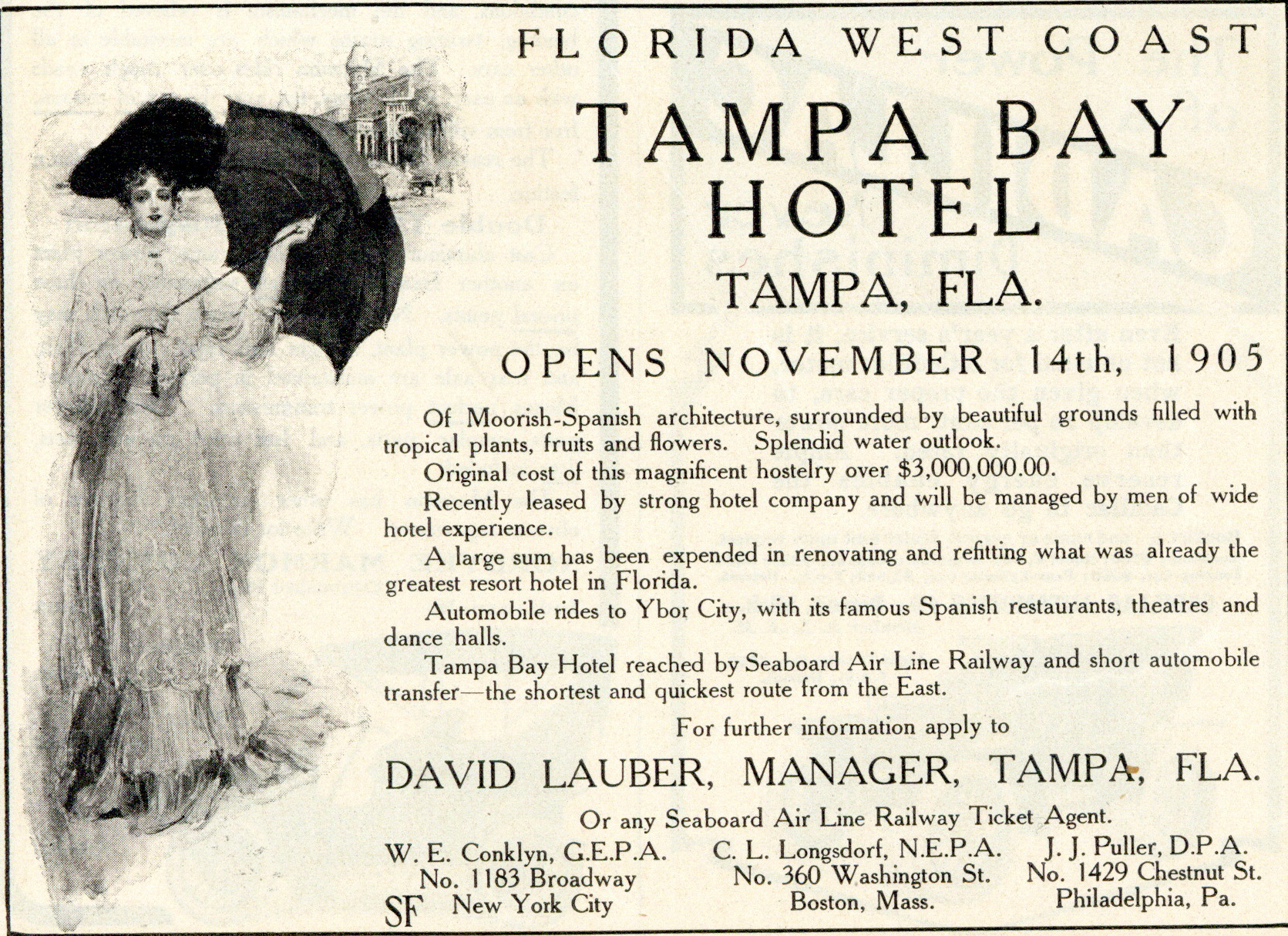 Advertisements reveal a great amount of details about the period in which they were printed. Everybody's Magazine published this 1905 advertisement featuring the hotel’s architecture, grounds, management and automobile rides. The Plant System used this image on many promotional items to advertise the charm and grandeur of the hotel and the lifestyle it represented. Everybody's Magazine, an American magazine, was published from 1899 to 1929.